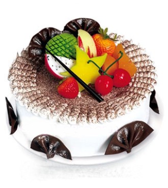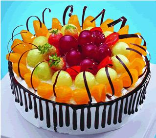 • 8寸錦秀果園巧克力奶油蛋糕,時(shí)令水果。(每加2寸加收40元)