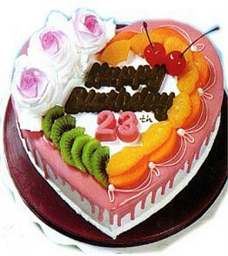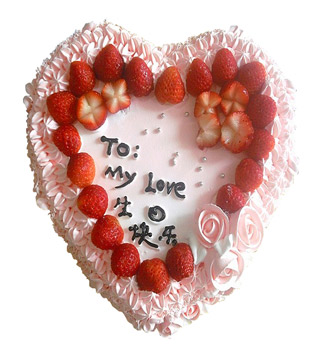 • 8寸心形水果鮮奶蛋糕,3朵奶油玫瑰花及時(shí)令水果。